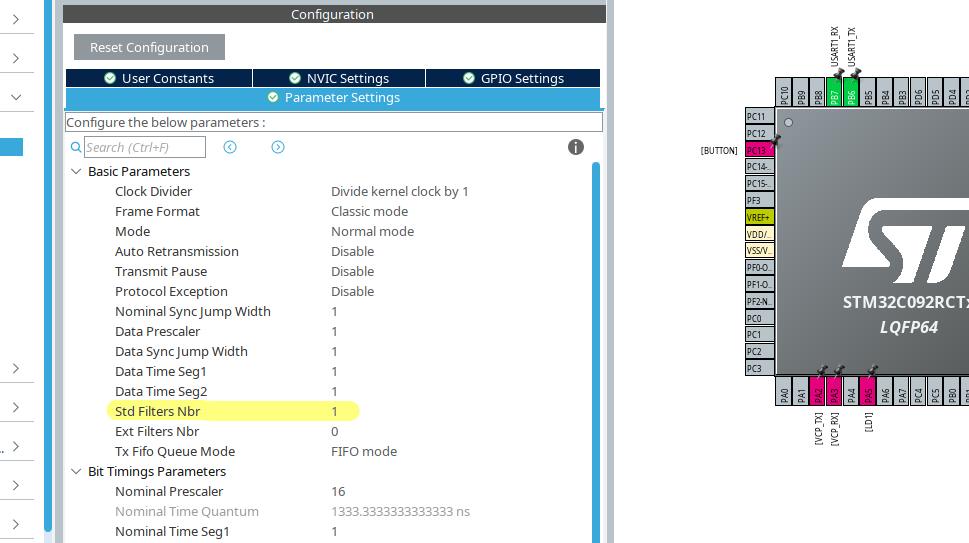 This is a blog entry about how sometimes you just get overwhelmed by UI and consequentially lost. I was looking into CAN on an STM32 dev board (the Nucleo C092RCT) when I ran into the strange issue that my little test programme would transmit CAN frames fine, but somehow not receive them.